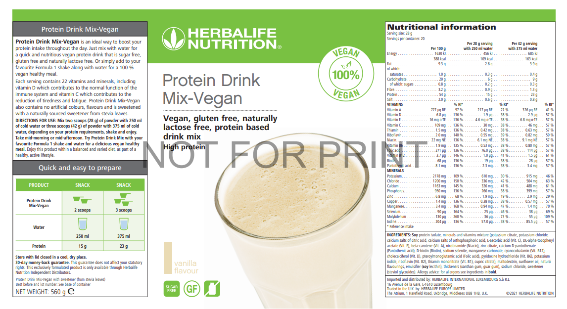• Herbalife Protein Drink Mix Vegan 560g – Light Vanilla